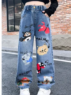 Детские джинсы на резинке с принтом (рисунком)