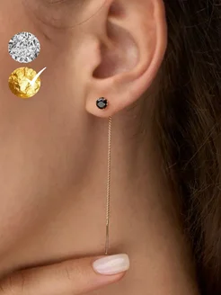 Серьги протяжки длинные продевки висячие с черным камнем