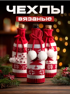 Чехлы вязаные для бутылки на Новый год