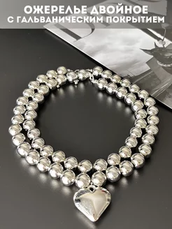 Ожерелье двойное с подвеской сердце y2k