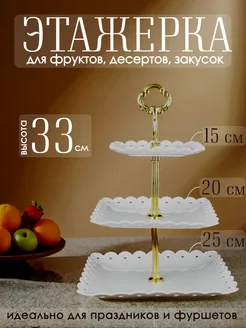 Ваза для фруктов 3-х ярусная 33 см белая, пластик