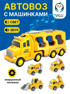 Набор инерционных машинок - автовоз и пожарная техника 4 шт