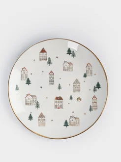 Тарелка закусочная 19 см фарфор N Домики и ели Townlet