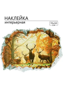 Наклейка 3Д интерьерная Олени в лесу 70*50см