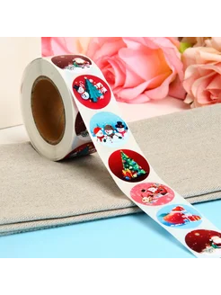 2,5 см, 500 шт в рулоне, Наклейки новогодние для творчества