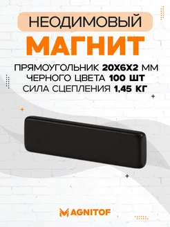 Неодимовый магнит прямоугольный 20x6x2 мм черные 100 шт