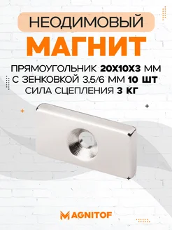 Неодимовый магнит прямоугольный 20x10x3 с зенковкой 10 шт