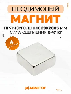 Неодимовый магнит прямоугольник 20x20x5 на 6,47 кг 4 шт