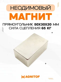 Неодимовый магнит прямоугольник 50x30x20 мм на 65 кг