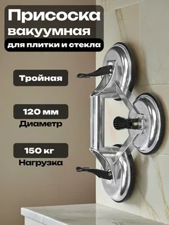 Присоска вакуумная тройная для плитки и стекла 3х120 150кг
