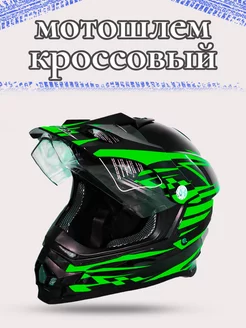 Мотошлем 819-6 кроссовый с визором зелёный(со стеклом)