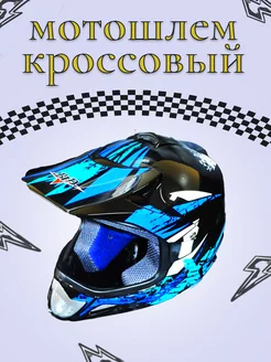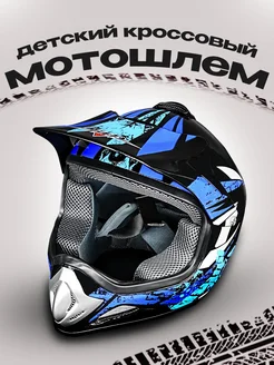 Мотошлем Детский- 818 кроссовый Чёрный с синим