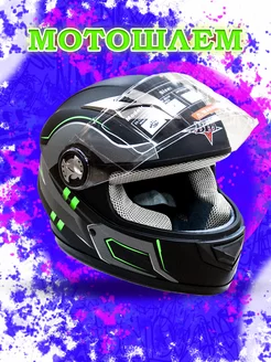 Мотошлем 830 чёрно-серый с зелеными полосками матовый