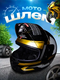 Мотошлем 825 черный с золотыми вставками(серые полосы)