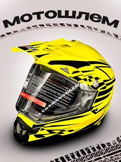 Мотошлем 819-6 кроссовый с визором желтый(со стеклом)