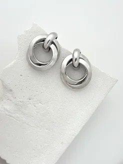 Серьги бижутерия конго пусеты серебристые