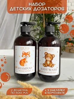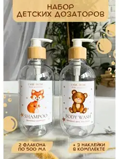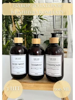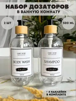 Набор дозаторов для ванной 500мл с наклейками деревянные