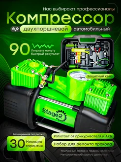 Насос автомобильный компрессор двухпоршневой в кейсе