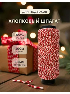 Хлопковый шнур, шпагат новогодний 100м (красно-белый)