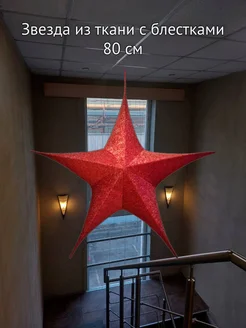 Звезда из ткани с блестками Z80R, 80 см, красный