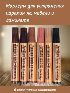 Маркеры для ремонта мебели коричневые, 6 оттенков