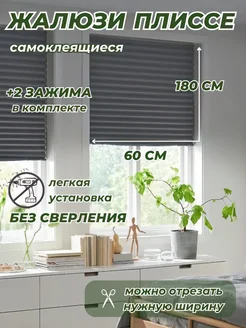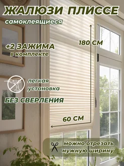 Шторы жалюзи плиссе самоклеящиеся 60*180 тканевые на окна