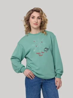 Свитшот без начеса оверсайз с принтом Паучек новогодний