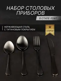 Набор ложек десертных черных матовых в стиле лофт, 2 шт