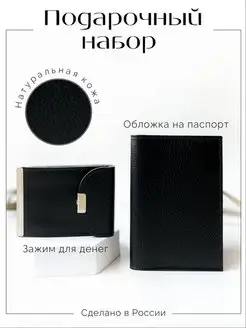 Зажим для денег и карт кожаный портмоне кошелек подарок