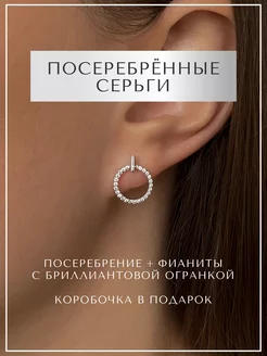 Серьги круглые посеребрённые с фианитами