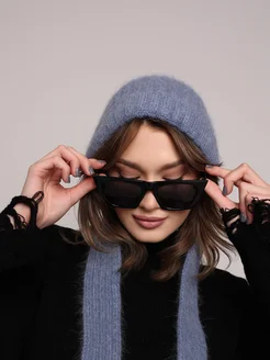 Шапка из ангоры модная с завязками