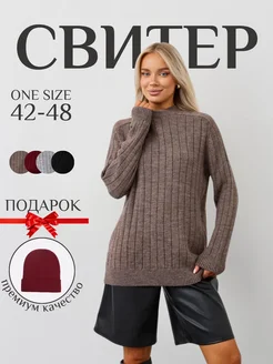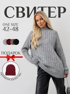 Базовый свитер оверсайз вязаный удлиненный