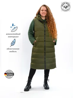 Жилет женский удлиненный утепленный с капюшоном