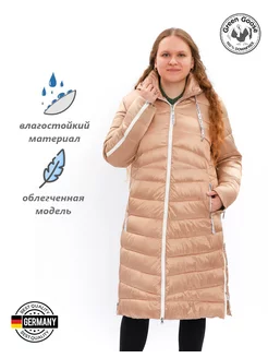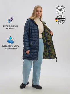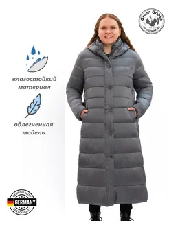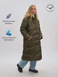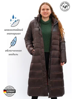 Пуховик утепленный длинный Пальто облегченное с капюшоном