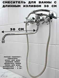 Смеситель для ванны двухвентильный, поворотный излив 33 см