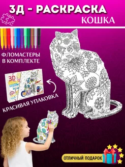 Картонный 3D Конструктор Кошка Пазл и Раскраска для Детей