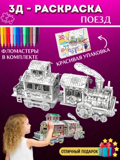 Картонный 3D Конструктор Поезд Пазл и Раскраска для Детей