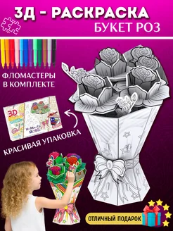Картонный 3д Конструктор Букет Пазл и Раскраска для Детей