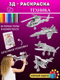 3D раскраска самолеты 3d пазл для детей набор для творчества