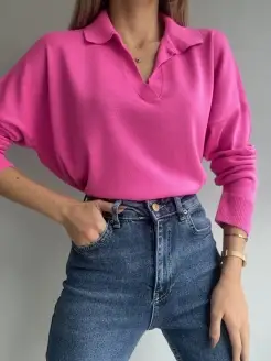 Кофта поло женская оверсайз с длинным рукавом