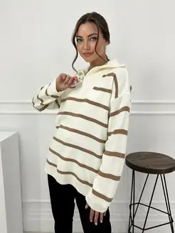 Женская кофта поло оверсайз с длинным рукавом в полоску
