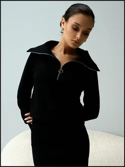 Свитшот на молнии с отложным высоким воротом