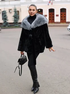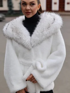 Шуба искусственная зимняя экомех с поясом оверсайз