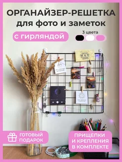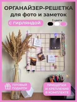 Мудборд настенный сетка с гирляндой органайзер решетка