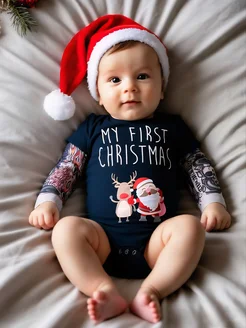 Новогоднее боди с тату для новорожденных малышей НГ 2026