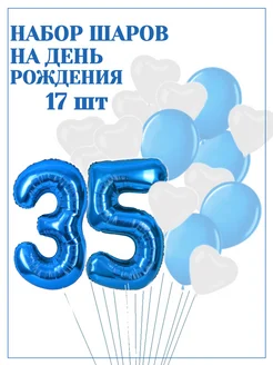 Набор воздушных шаров 35 лет цифры синие, сердца белые