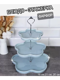 Блюдо этажерка трехъярусная сервировочная фарфор