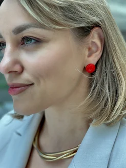 Серьги красные круглые бижутерия