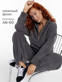 Флисовый спортивный костюм женский со свитшотом на молнии