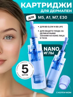 Картридж для дермапена Нано иглы, синий длинный, 5 шт